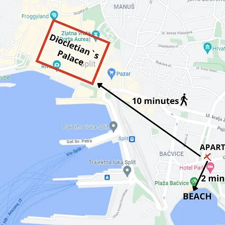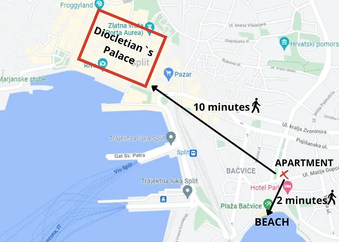 이 숙소는 메스트로비츠 갤러리에서 도보로 25분 거리에 있으며 디오클레티아누스 궁전에서 950m 이내 거리에 있습니다. 스플리트 도심부는 아파트에서 약 1km 떨어져 있습니다. Restaurant Bruna 레스토랑은 숙소에서 100m 이내에 유럽 식사를 제공합니다. Bacvice In Split 아파트는 Firule Beach에서 가까운 도보 거리에 있습니다.